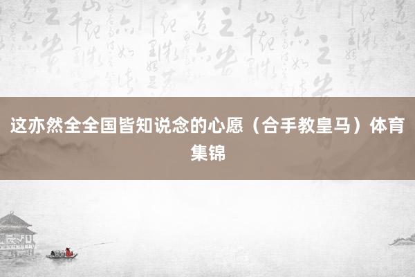 这亦然全全国皆知说念的心愿(合手教皇马)体育集锦