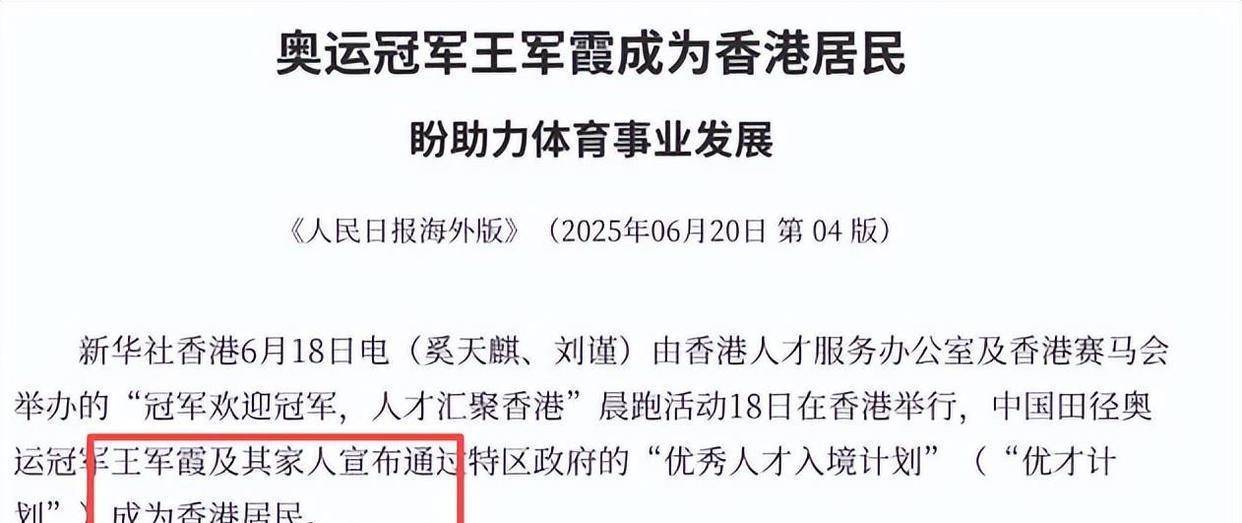 本年六月份的音信说,王军霞靠“优才狡计”顺利拿到了香港住户身份。