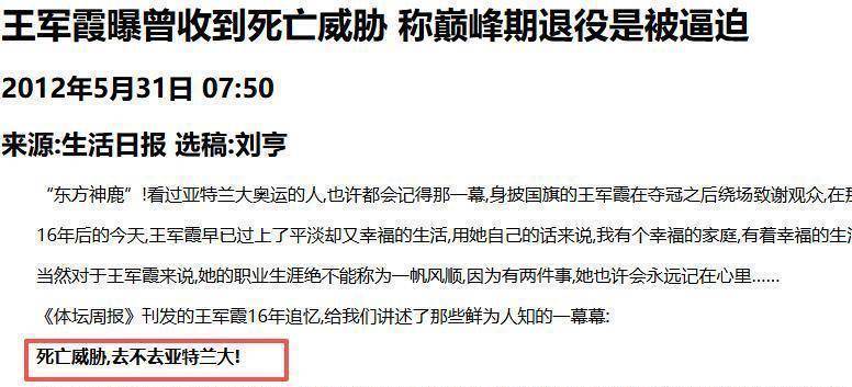 据音信东谈主士披露,王军霞之是以选拔退役,的确是无奈之举。