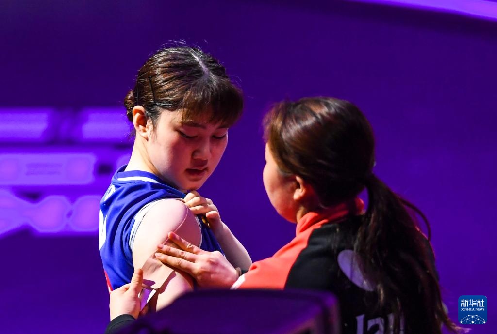 3月14日,大藤沙月在比赛中继承治愈。新华社记者 唐奕 摄